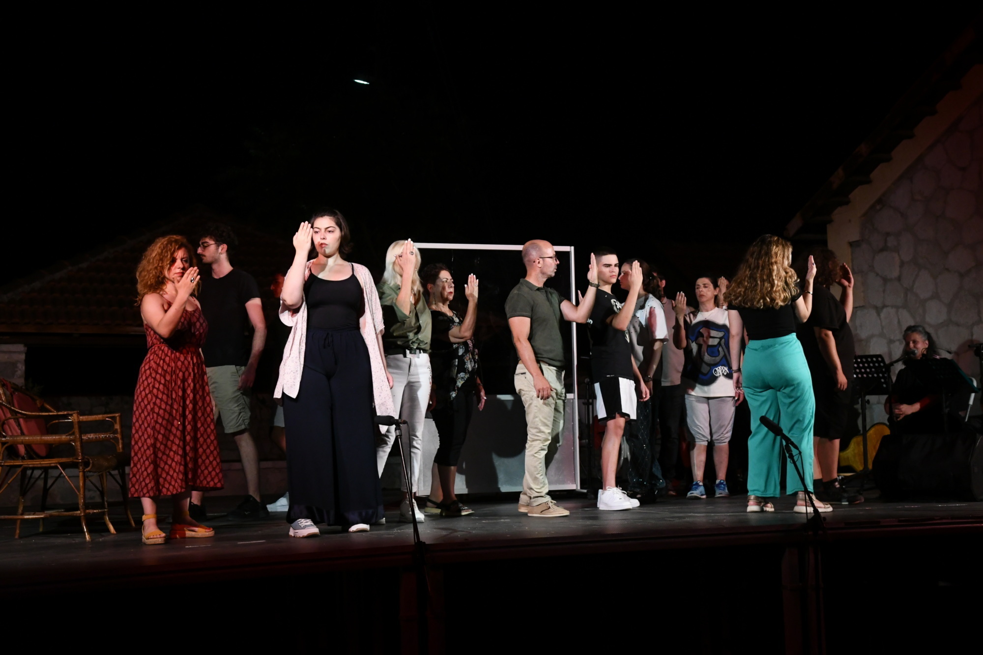 Στην παράσταση συμμετείχαν 43 ηθοποιοί και μουσικοί.